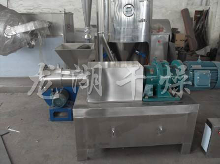 在固體與液體共存并以固體為主的分散體中,利用分散體的自粘性(或外加粘結(jié)性),通過(guò)強(qiáng)制方式(如擠壓、重力、離心力、機(jī)械力、氣流沖力等)使固體粉料基本微粒相互粘接、增大,并形成一定形狀和粒度均勻、集中的顆粒群。濕法造粒成套裝置主要由混合(捏和)、造粒、干燥及其輔助系統(tǒng)設(shè)備構(gòu)成。粉料經(jīng)混合(捏和)后,進(jìn)入造粒機(jī)形成所需粒度的含濕產(chǎn)品,經(jīng)干燥得到顆粒狀成品,從而實(shí)現(xiàn)造粒的目的。