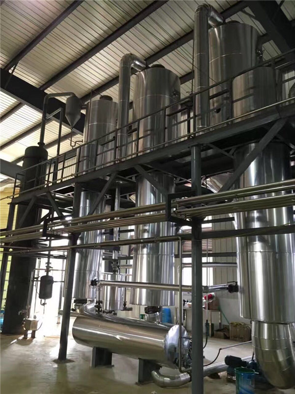 高鹽廢水蒸發器利用外加動力(循環泵)將循環管下降的溶液和部分原料液送到加熱室。循環速度。循環速度的大小可通過調節泵的流量來控制。一般循環速度在2.5M/S以上。當循環液體流過熱交換器時被加熱,然后在分離器中壓力降低時部分蒸汽,從而將液體至對應該壓力下的沸點溫度,特別適用于易結晶物料。