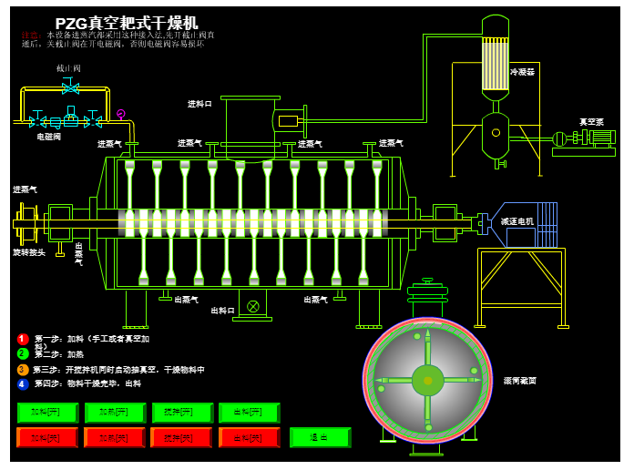 真空耙式干燥機操作簡單,進出物料方便,大幅度減輕了工人勞動強度,同時也減少了物料在干燥過程中受到的環境污染,提高了產品質量,符合藥品管理規范“GMP”的要求。
